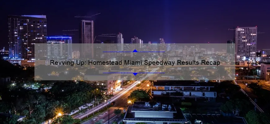 Short answer homestead miami speedway results: Homestead Miami Speedway hosts NASCAR Cup Series races annually. The results of the current and past races are available on the official website, as well as various sports news outlets. The latest race was held on November 14, 2021, with Kyle Larson taking home the championship.